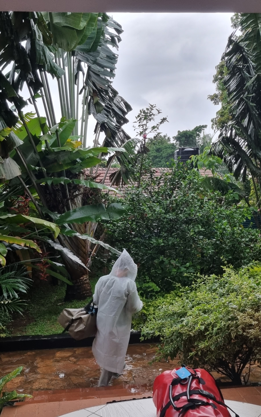 07:00 Uhr. Es gewittert und regnet in Strömen, der Strom ist ausgefallen. Gleich fahren wir 4 Stunden und gehen dann auf Nashorn Pirsch.